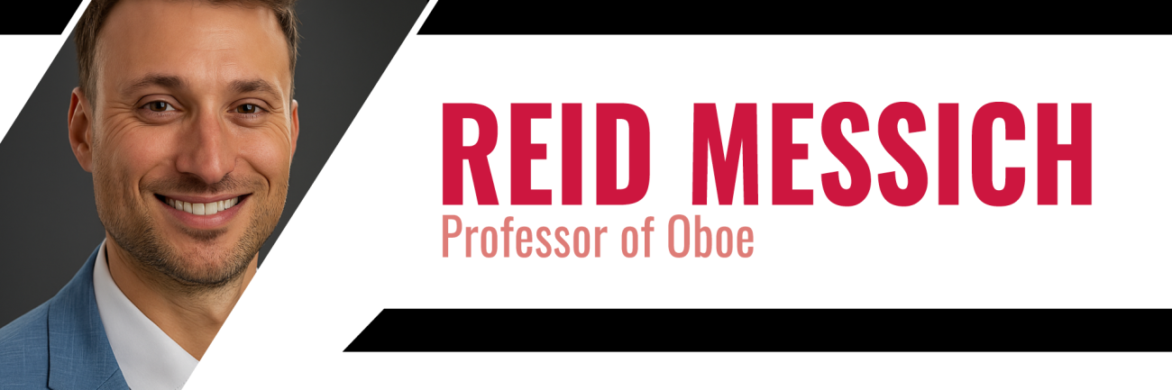 Reid Messich is Professor of Oboe at the University of Georgia, where he is a member of the Georgia Woodwind Quintet. He also serves as Co-Principal Oboist of Memphis’s IRIS Orchestra/IRIS Collective, under Maestro Michael Stern, and as Principal Oboist of the Hilton Head Symphony Orchestra, under Maestro John Morris Russell. Each summer, he teaches oboe and woodwind literature at the MasterWorks Music Festival, hosted at Liberty University.