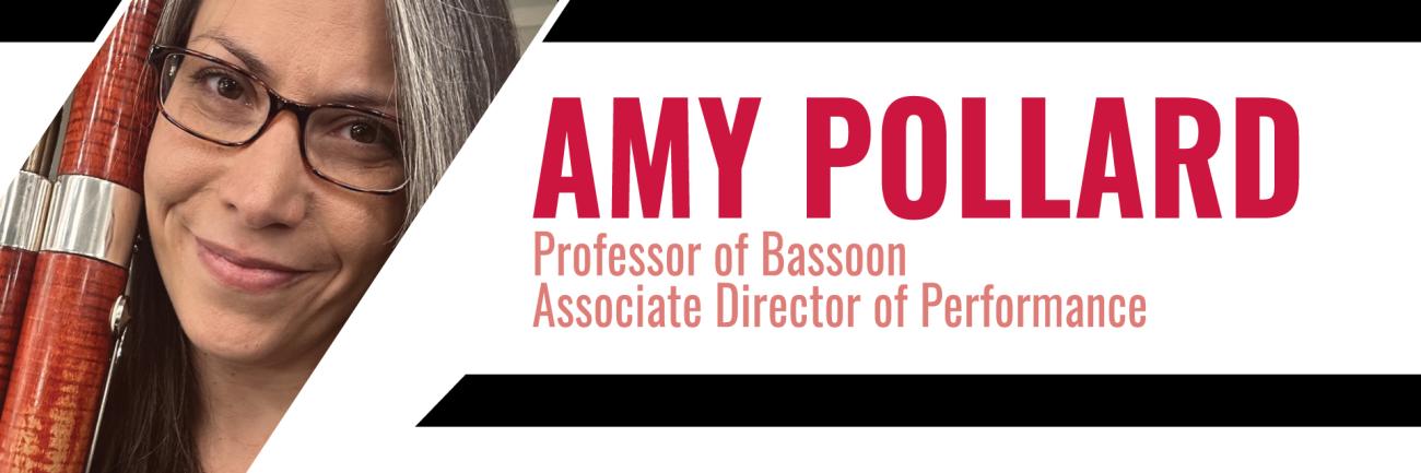 Amy Pollard is the Professor of Bassoon and Associate Director for Performance at the Hugh Hodgson School of Music at the University of Georgia. She formerly served as Lecturer of Bassoon at Baylor University and has also been on faculty at the University of Dayton and the Cincinnati School for the Creative and Performing Arts. During the summer she teaches at the Sewanee Summer Music Festival and has been on the faculty of the Interlochen Arts Center Advanced Bassoon Institute, the UGA Study Abroad program in Alessandria, Italy, the Saarburg Music Festival in Saarburg, Germany, and the Atlanta Chamber Music Festival. She has taught master classes at conservatories and universities throughout the United States and internationally as well as serving as a guest artist for numerous double reed festivals and clinics.
